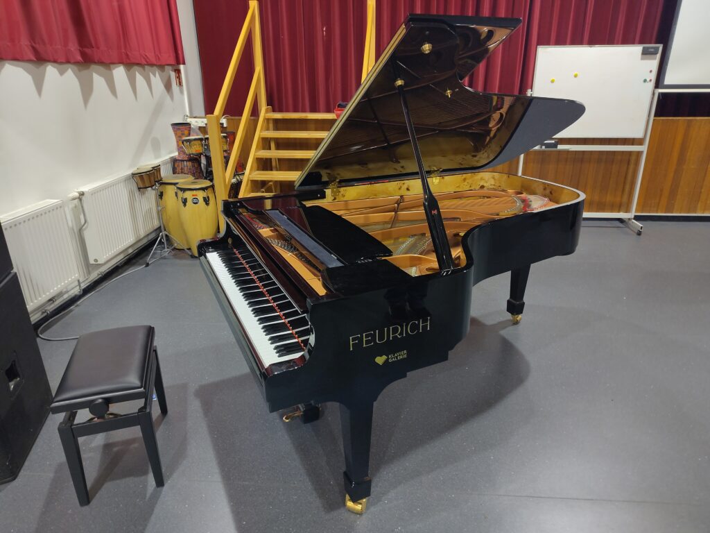 Als Absolvent:innenverein haben wir 4.000 € für die Anschaffung des neuen Flügels zur Verfügung gestellt – für uns als Verein eine große Investition, die aber nachhaltig allen Schüler:innen zu Gute kommt. Das neue Klavier wird nicht nur bei Festlichkeiten, wie der Adventfeier oder der Maturafeier, eingesetzt, sondern auch im täglichen Musikunterricht verwendet.